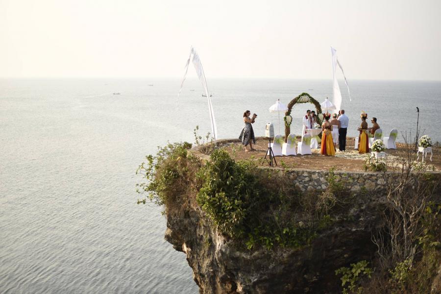 Svadobný obrad sa konal na útese Balangan na Bali.
